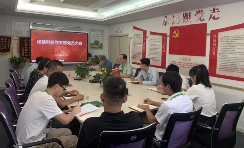 2022年8月1日,在中国人民解放军建军95周年之际,绿建科技党支部利用主题党日活动会召开了支部党员大会,针对支部近期的工作进行通报,传达了高新区非公党工委关于常态化、长效化开展党史学习教育工作的要求部署。大会还重点就两位预备党员旷蓉、成信军的转正问题进行讨论表决,10名正式党员都恳切地发表意见,对两位预备党员存在的不足提出中肯建议,并庄重地填写好表决票,认真行使正式党员应有的权利。表决结果是10名党员一致同意给予两位表现优秀的预备党员如期转正。