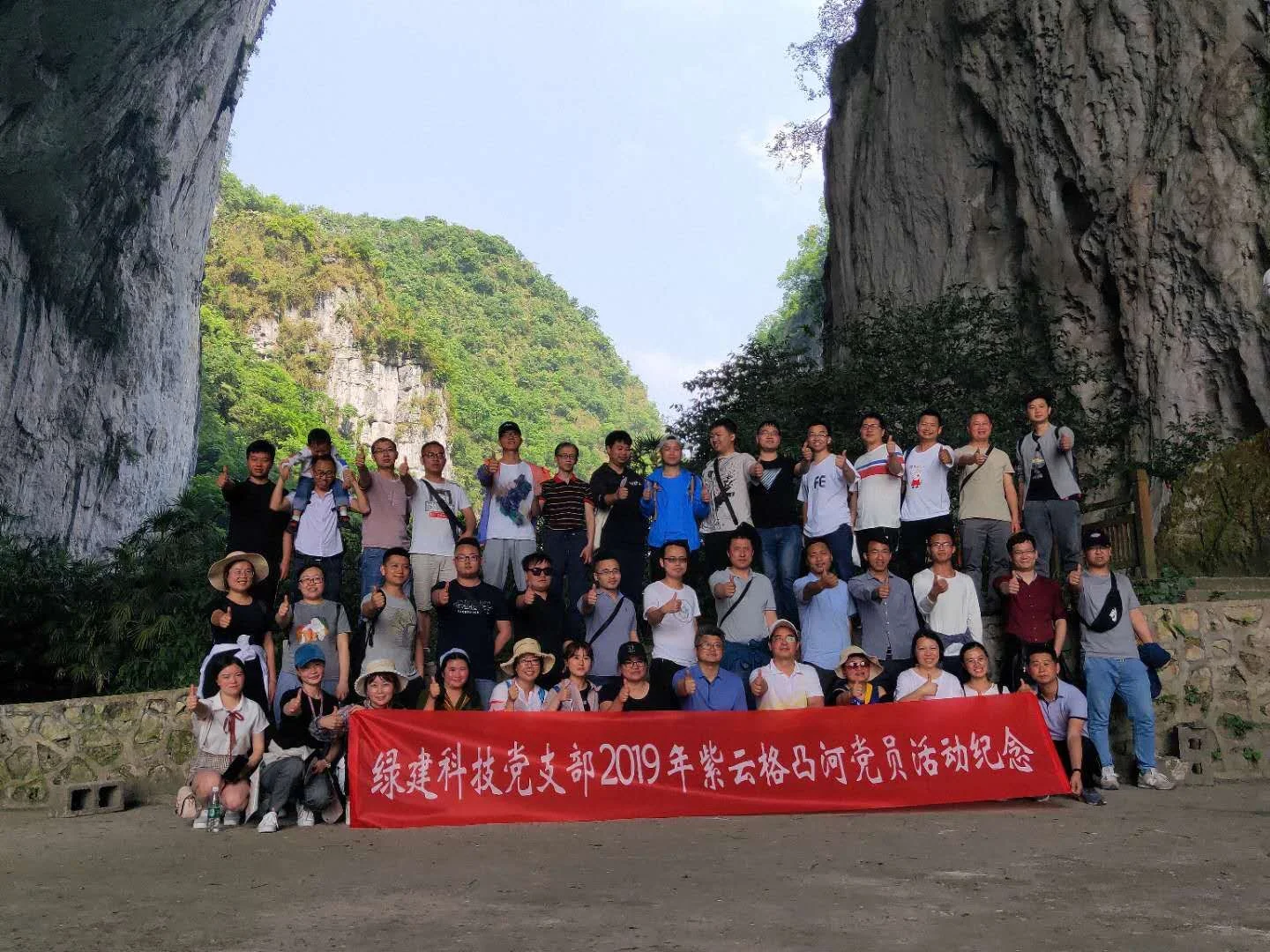4月27日,尽管仍算是春天,但在黔南的火热天气中,一支充满激情的队伍,在支部书记龙君同志的带领下,来到以神奇自然景观著称的紫云县格凸河风景区,进行2019年度党员带动积极分子开展户外拓展活动。