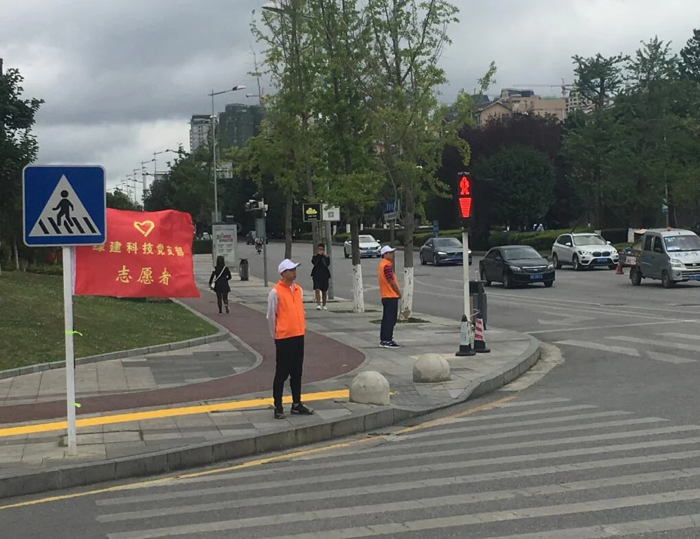 8月初至今,绿建科技党支部同志们一直怀着满腔热血,主动积极参与到志愿服务活动中。大家自愿贡献个人休息时间,本着改善社区交通环境的宗旨,即使炙热的太阳不停炙烤,绿建党支部的同志们服务意识却依旧强烈。大家轮流站岗,穿戴好橙色马甲和小白帽,间或还碰见下雨的时候,大家依旧克服各种困难坚守岗位,认真提醒并引导过往行人按信号灯指示安全行走,对老弱病残等特殊群体,志愿者积极帮忙推轮椅、搀扶病人、引导车流避让,偶遇不识路的行人也耐心细致地助其识别导航。