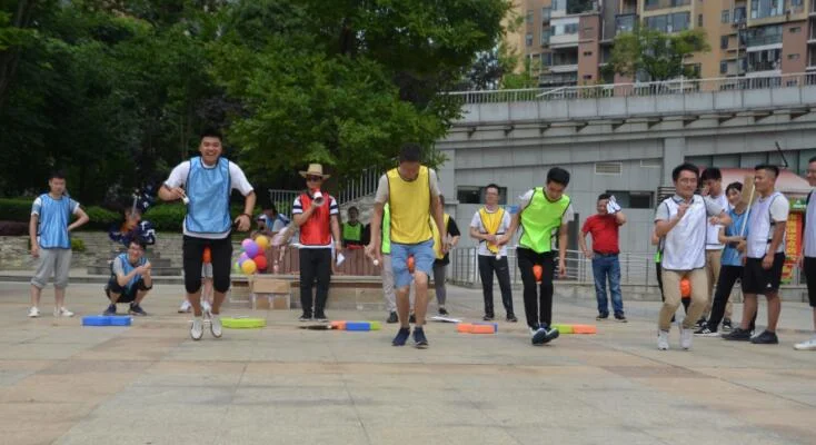 2020年7月4日,下午,一个骄阳似火的周末,绿建科技公司携手龙马融合技术公司、湖南君致生态公司全体员工,在金阳新世界休闲广场,举办了一次别开生面的职工趣味运动会。活动由公司工会组织,共设置了八个幽默生动兴趣盎然的趣味游戏:排山倒海、摸石头过河、纸杯传情、夹乒乓球接力、穿圈接力、仙人指路、背夹气球接力、绳毽接力。这些活动兼顾大家,既有机智灵巧的项目,也有势大力沉讲求团队协作配合的游戏。