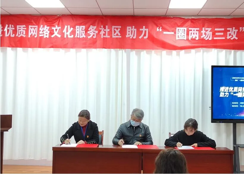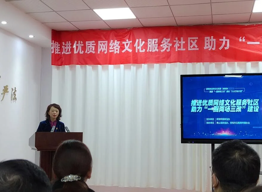 2021年12月17日上午,贵阳市观山湖区金阳街道金元社区居委会议室里,气氛热烈,掌声一阵胜过一阵,参会人员都精神饱满、气势昂扬。由贵阳市网信办主办的“推进优质网络文化服务社区,助力‘一圈两场三改’建设”活动推进会暨签字仪式在这里举行。
