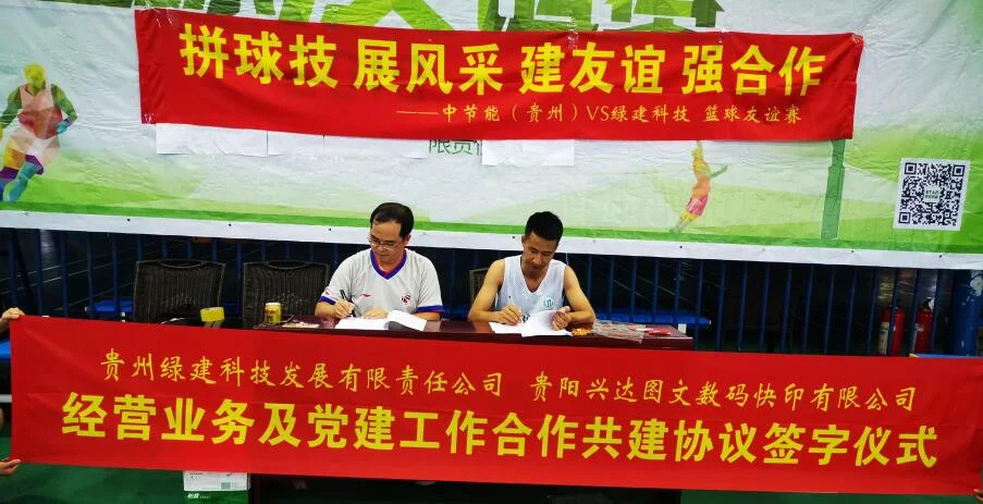随后,受绿建科技公司邀请,本次参与比赛的贵阳兴达图文数码快印有限公司也与绿建公司举行了经营业务及党建工作合作共建协议签字仪式,双方也将继续在经营工作方面持续加强合作,共同保障公司的业务稳定开展;同时,由于绿建科技公司的党建活动开展比较丰富,极大地吸引了兴达公司的有志青年,他们半年多以来一再表达意愿,希望在业务深度合作的同时,也请求加入到绿建科技党支部的组织生活中来(石永华)。
