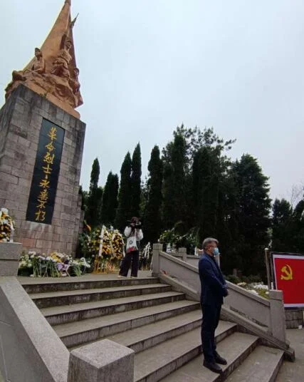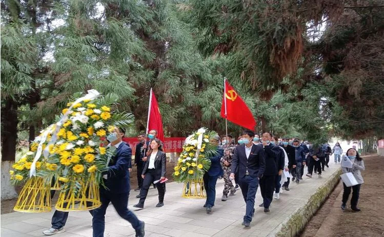 在系列仪式完成后,全体党员来到烈士纪念碑前,缓缓地绕着烈士纪念碑行注目礼,表达敬仰之情和无限哀思。