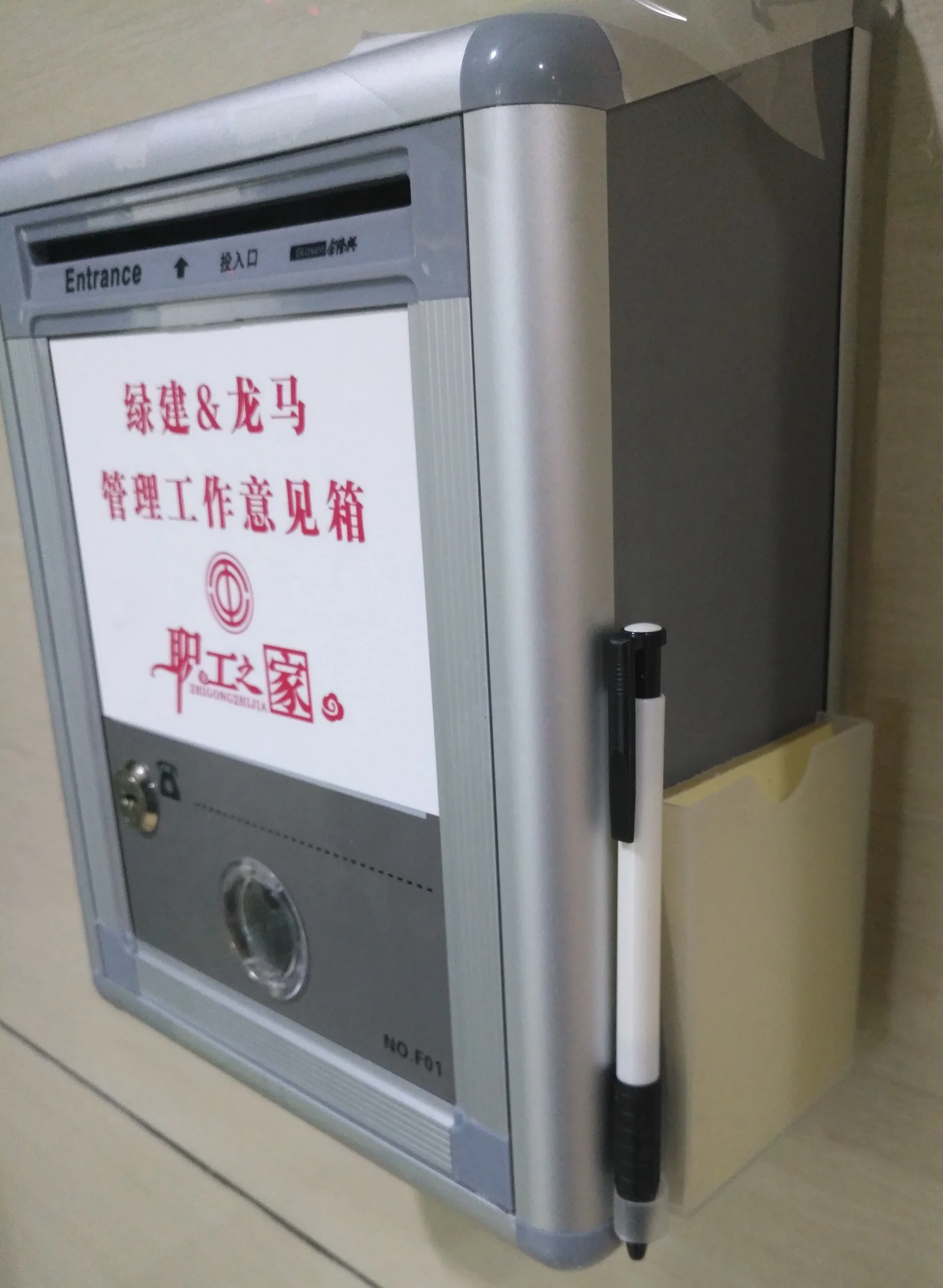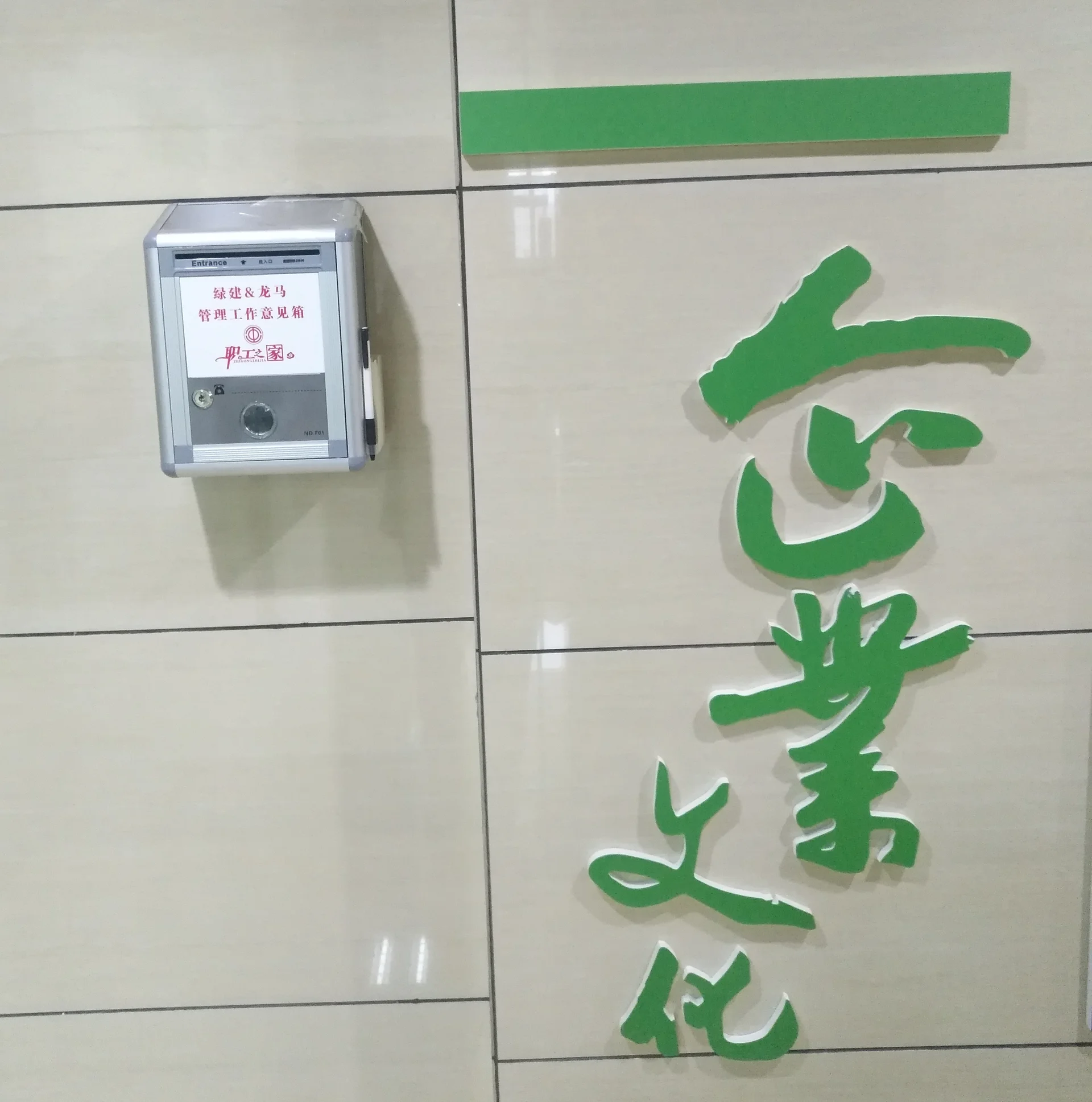 近日,贵州绿建科技发展有限责任公司工会、贵州龙马融合信息技术有限责任公司工会联合在办公楼五楼走道右侧墙上设置了一个管理工作“意见箱”,并向员工发出通告,并号召大家共同来积极关心、关注和支持公司的经营管理,公司是大家共同的家园,只有公司越来越好,大家才能有更好的发展平台。