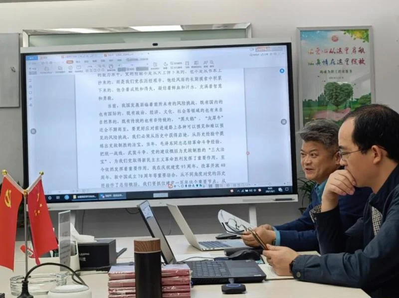 活动会一开始,石书记汇报近期支部党建暨队伍发展情况,以及党史学习教育活动计划与责任分解。紧接着延续上一次活动会的“一把手”领学的学习任务,龙书记带领支部全体成员第二次专题学习习近平总书记《在党史学习教育动员大会上的讲话》,深入学习习总书记的金句,进一步感悟其新思想的伟大魄力。