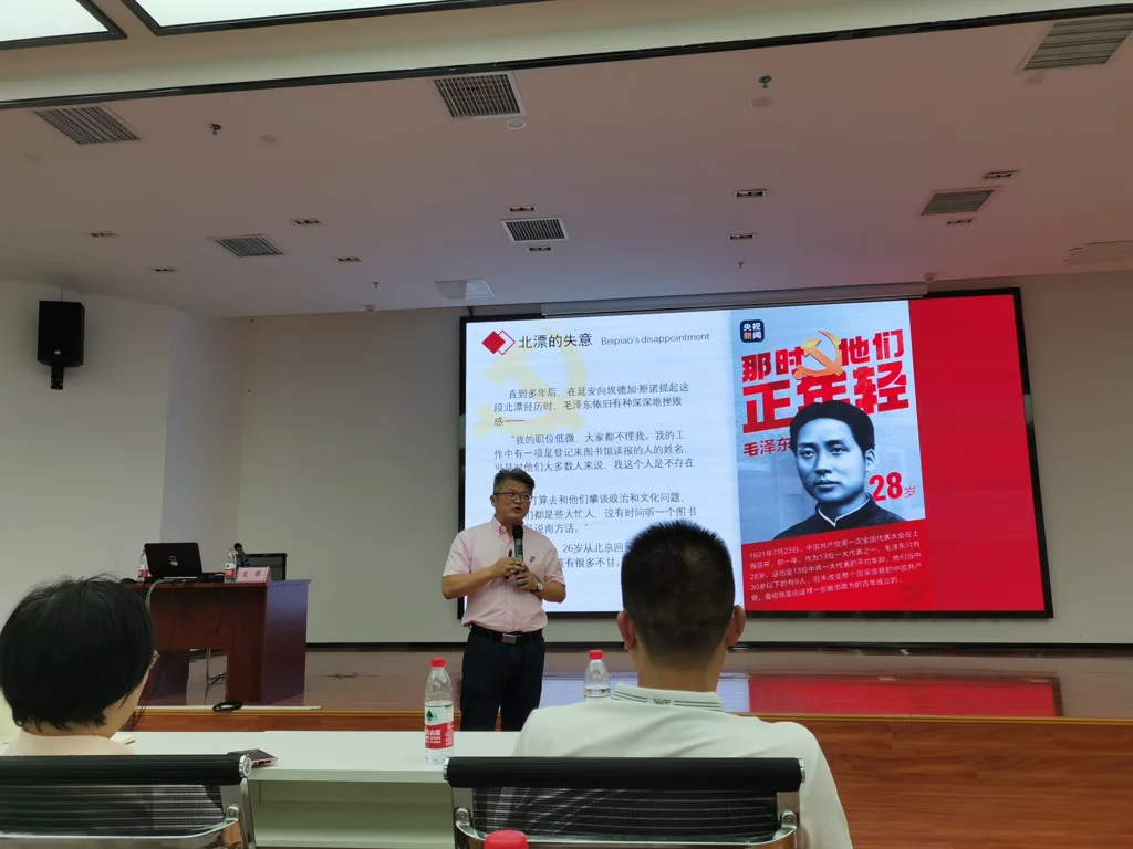 2021年6月19日下午,在高新区组织部的组织下,绿建科技党支部书记、董事长总经理龙君同志在高新区科学城党政服务中心,向高新区全区非公党组织书记、专职党务工作者共60余人,分享了他自己的学习党史的感悟和收获,讲述了曲折又引人深思的毛泽东和张国焘这两个“北漂”轰轰烈烈而又跌宕起伏的传奇历史。
