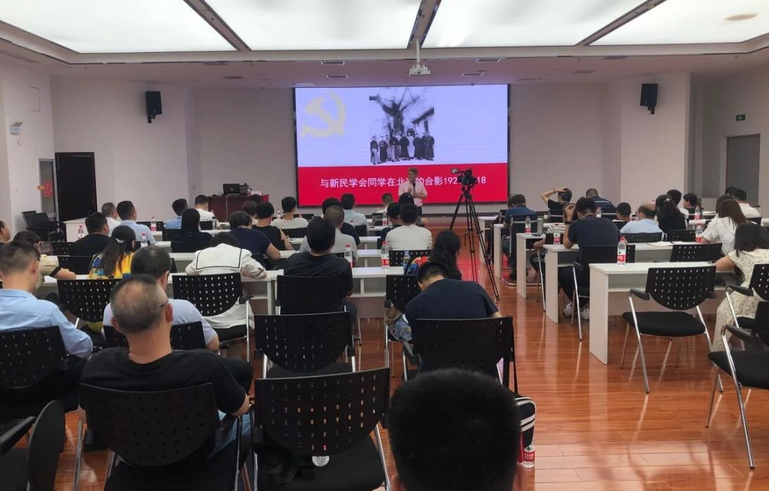 2021年6月19日下午,在高新区组织部的组织下,绿建科技党支部书记、董事长总经理龙君同志在高新区科学城党政服务中心,向高新区全区非公党组织书记、专职党务工作者共60余人,分享了他自己的学习党史的感悟和收获,讲述了曲折又引人深思的毛泽东和张国焘这两个“北漂”轰轰烈烈而又跌宕起伏的传奇历史。